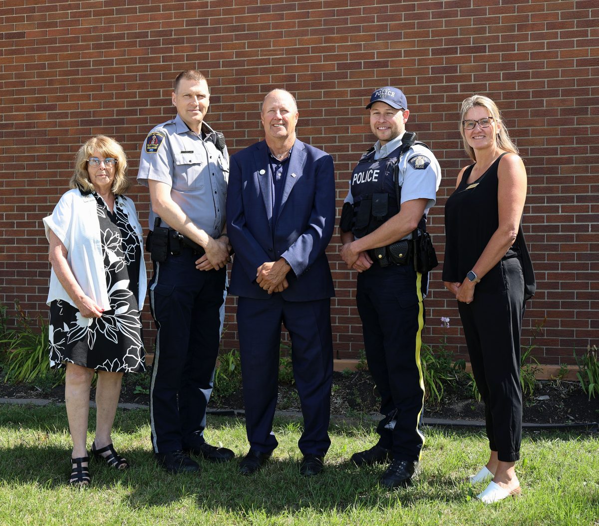 (L-R) STAR Catholic Chair Donna Tugwood; CPO Bradley Agotnes, the new SRO; Leduc Mayor Bob Young; RCMP SRO Michael Cline; and BGSD Vice Chair Angie Charpentier.